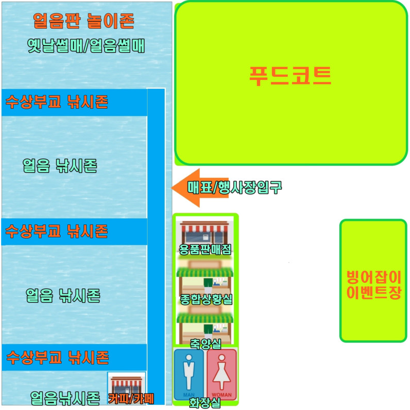 - 빙어 뜰채잡이: 주말(토/일)에만 운영되며 빙어 수급에 따라 일시적으로 운영이 중지될 수 있습니다.